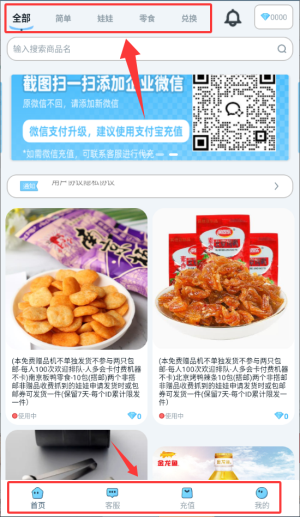 3、在主界面浏览商品并使用客服等功能。