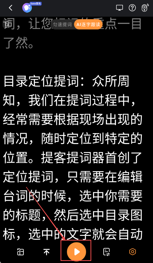 3、点击屏幕中央位置的播放按钮切换到提词器模式,开始使用提词功能进行正式的录制或演讲过程。