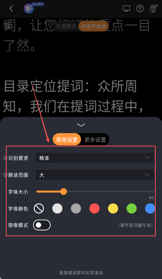 3、提词面板自定义设置灵活多样,根据个人习惯和场景具体需求,调整字体颜色速度透明度等参数优化体验。