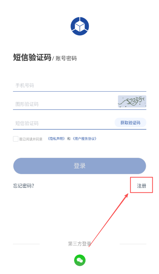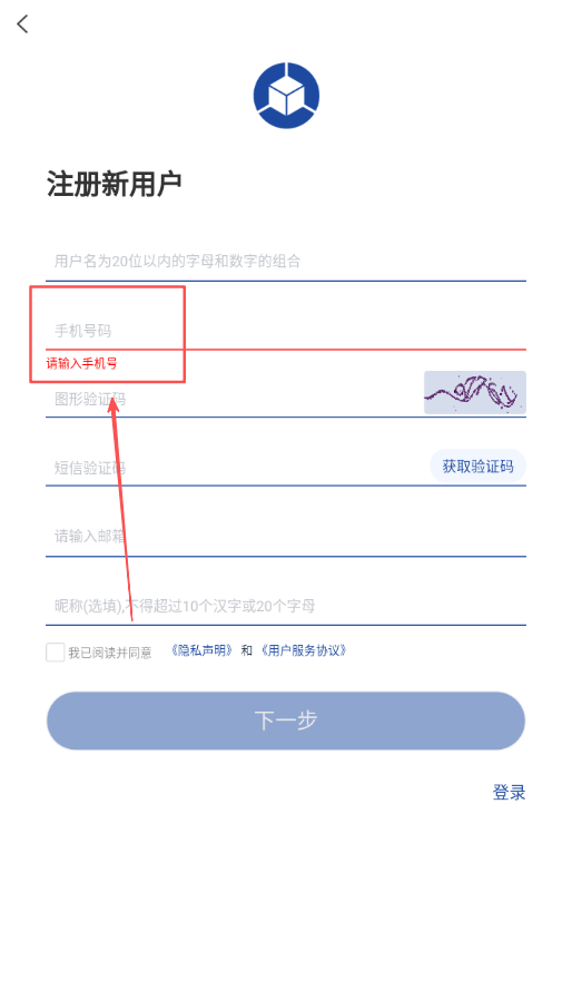 2、在应用首页或登录界面找到注册入口并点击,进入注册页面后按照提示输入个人的手机号码。
