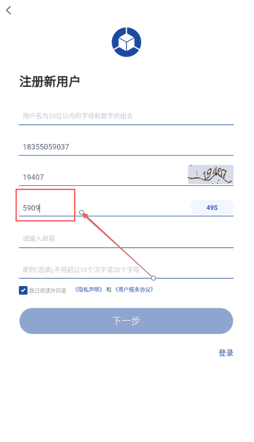3、系统会向所填手机号发送一条包含数字验证码的短信,用户需在指定位置正确填写该验证码以完成身份核验。