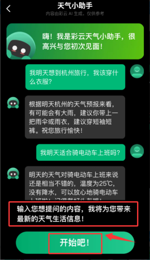 3、通过天气小助手输入问题获取生活建议。