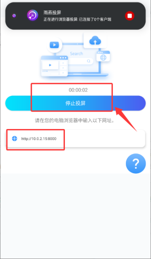 3、按指引在电脑端输入网址投屏,可随时停止。