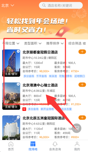 一款在线酒店会场预定app