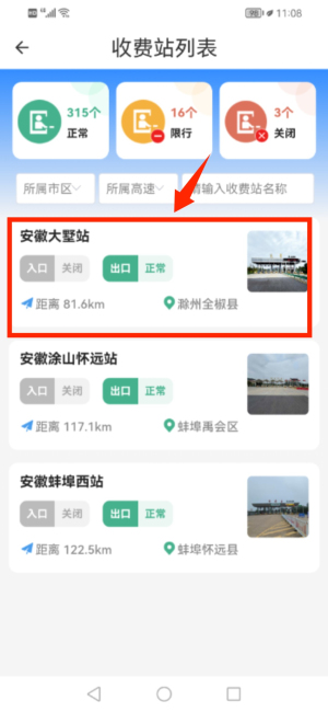2、从列表中选择指定收费站,进入详情页面。