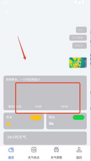 3、使用特色功能如雷达回波图、卫星云图监测天气变化,或查看景区、道路等专项天气预报。