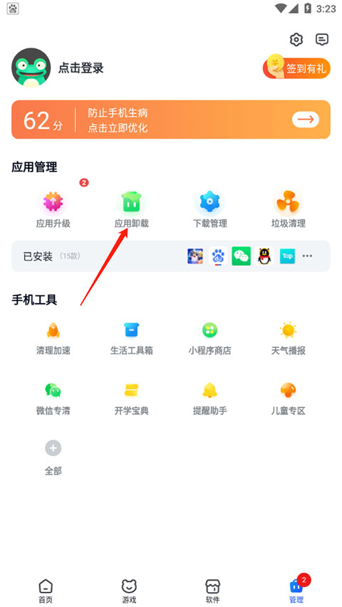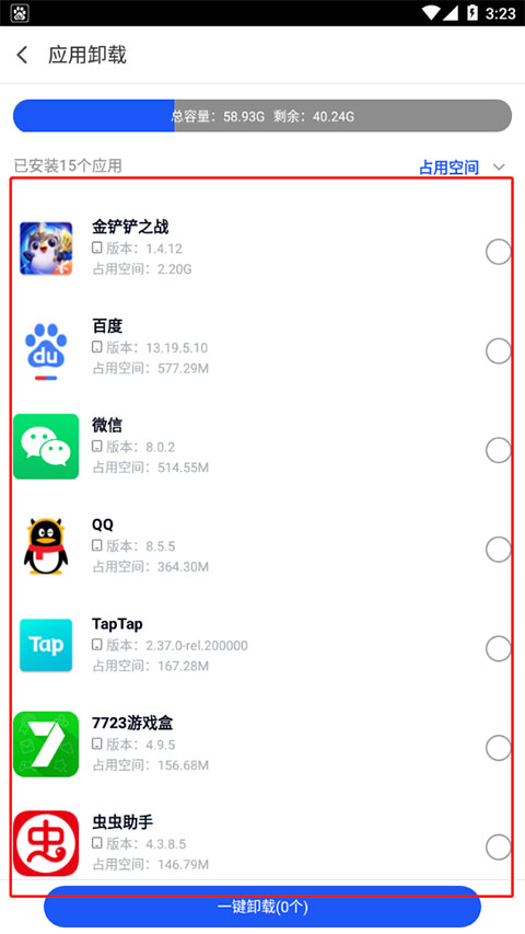 在这个页面选择到自己想要卸载的应用后,点击一键卸载。