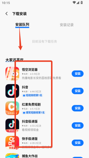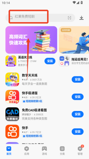 1、下载应用时,打开商店直接搜索软件名称,点击安装按钮即可自动下载并安装到手机中。