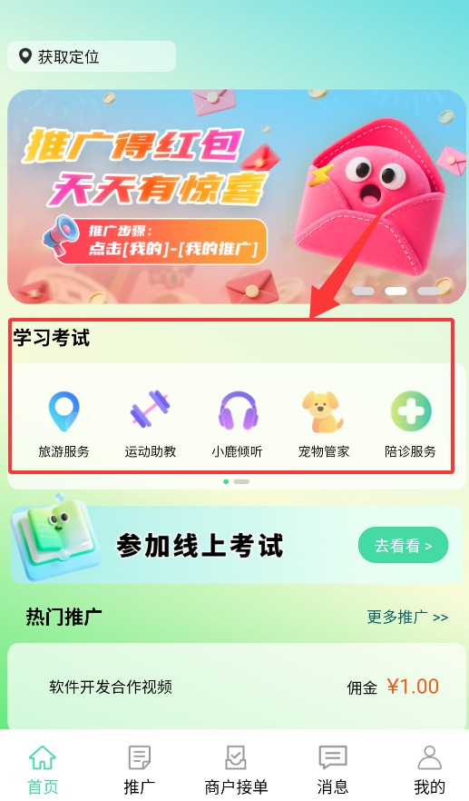 3、推广系统建立分级奖励,成功邀请新用户或商户可获得奖励分成,推广数据实时统计并支持提现操作。