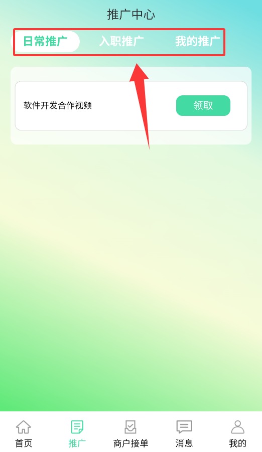 3、推广界面包含日常推广、入职推广、我的推广等推广管理功能。