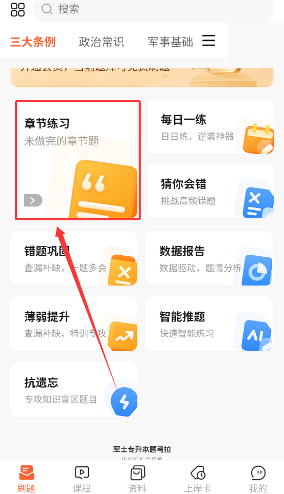 军士专升本题考拉专注于军考教育的备考工具,提供海量真题与模拟题库,覆盖职业资格考试核心考点,支持智能组卷、错题归纳与仿真模考,帮助用户高效强化知识点,其独特的遗忘曲线复习提醒与可视化成绩报告功能,让备考更科学精准。