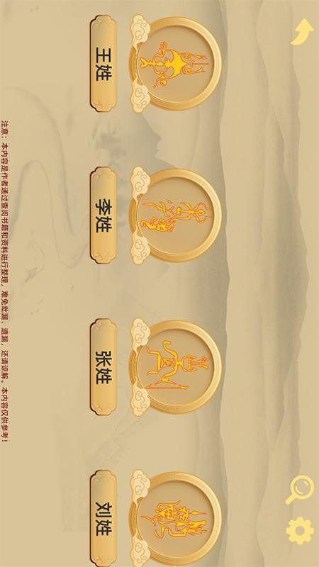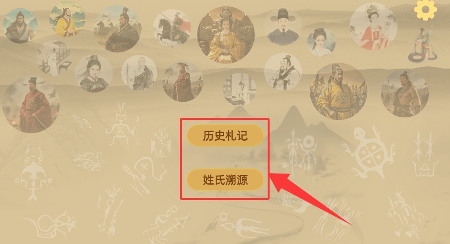2、可选择历史札记或姓氏溯源两种主要功能模块进行使用。