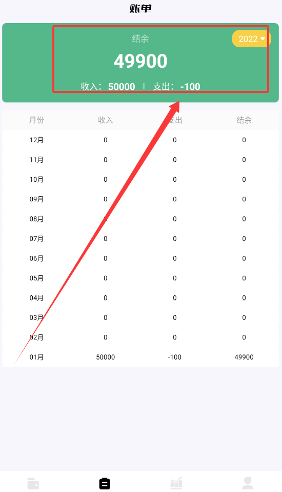 4、如果想查看历史记录,切换到账单页面就能按月或按年浏览详细的收支流水了哦。