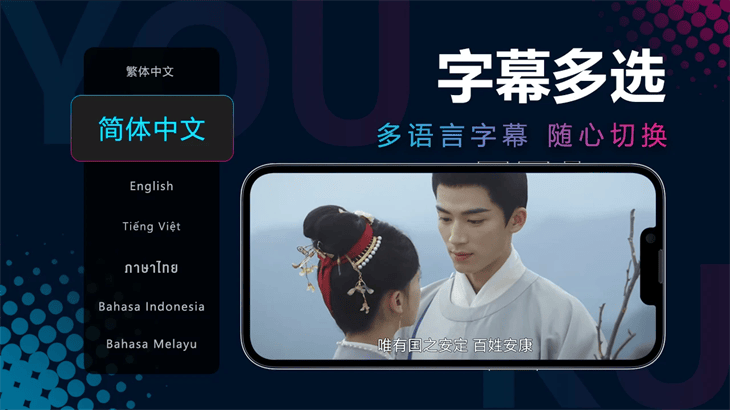 多语言支持:支持英语、韩语、日语、普通话和粤语等多种语言,其字幕和用户界面也提供多种语言选择,如繁体中文、泰语、越南语、印尼语、西班牙语等,满足不同国家和地区用户的需求。