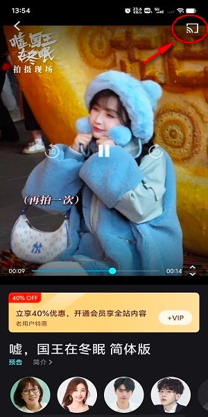2、接着点击右上角的投屏图标,需要注意的是所要投屏的设备必须在同一局域网内