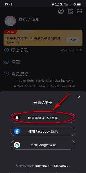 提供了手机或邮箱、Facebook和Google登录,建议选择手机或邮箱,更方便;
