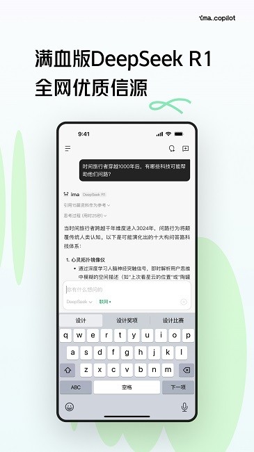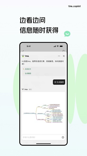 ima.copilot的首个移动端版本,是面向学习、办公等场景的AI智能工作台,搜、读、写一体的效率工具。通过建设解读、问答、创作三块能力,实现相互结合、丝滑转场(边看边问、边写边搜、边问边记)。
