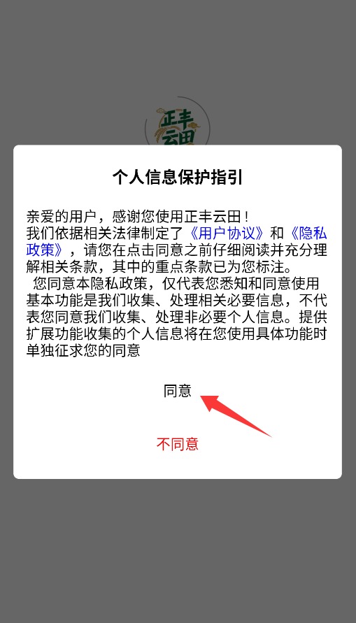 1、首次启动弹出协议弹窗(通常为隐私政策或用户协议),点击同意后进入主页面。