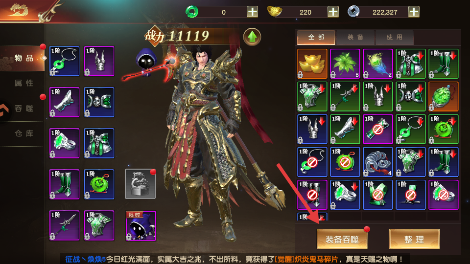 1、打开背包点击装备吞噬。