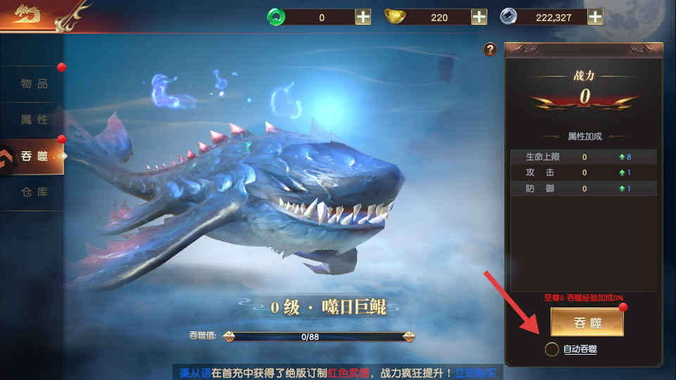 2、勾选自动吞噬再点击吞噬。